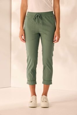 The LTL port 7/8 pant — features elasticated waist with adjustable drawcord and relaxed leg with optional turn up cuff. Perfect lightweight cotton rich stretch pant for everyday.