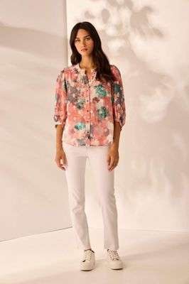 Experience timeless elegance with the Chantelle Shirt. Crafted from a luxurious cotton, it showcases a captivating Chantelle Print. Enhanced with forest glass buttons, this button-through shirt exudes refinement. The gathered sleeves controlled with a band allow for effortless styling versatility, perfect for any occasion.