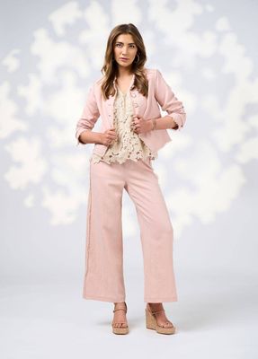 Military style jacket, with subtle texture, frayed edges, flattering princess seams and  asymmetric buttons. Fully lined.
