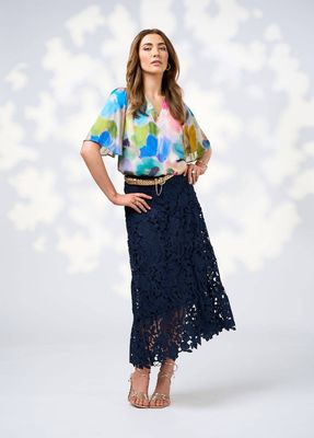 Sheer floaty tee with deep V neckline and floaty sleeves. With a lined body.
