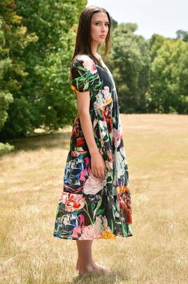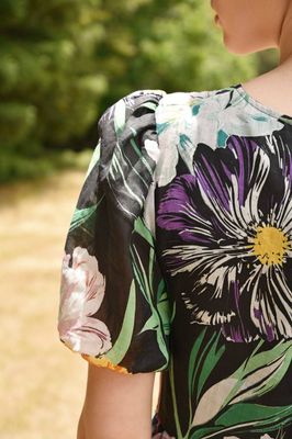 Embody the romance of spring in the ‘Dreaming of Spring’ dress. Crafted in the lightweight ‘Leave the Bloom’ printed cotton, this easy-fit dress showcases a full, tiered skirt with charming puff sleeves complete with an elasticated cuff. Perfect paired with a simple sneaker for day-to-day wear or easily dressed up with a heeled sandal.